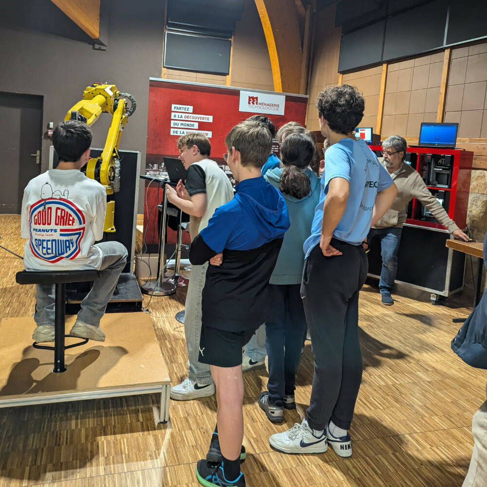 À venirToujours en piste, 4 & 5 juillet 2026 à Mendes À venirExposition robotique, 28 & 29 mars 2026 à Dijon SpectacleToujours en Piste à Marvejols, 11 juillet 2025 MédiationAteliers robotiques le 8 Février 2026 à Cachan TransmissionAteliers robotiques à Gif-sur-Yvette, février 2026 À venirToujours en Piste à 6Mettre, 6 au 17 avril 2026 À venirEn juillet, Toujours en Piste à Mendes TransmissionFaux-vrai procès, Annecy, 18 septembre 2025 Spectacle« Toujours en piste » à Marvejols TransmissionFormation sur mesure à l’Attisoir, Mendes Spectacle« Toujours en Piste » à Cachan MédiationJournée académique en Lozère SpectacleNouveau spectacle « Toujours en piste » Spectacle« La Créature métallique » à Créteil (94) MédiationFête de la Science 2024 à Palaiseau (91) Exposition,MédiationLe mois du ROBOT à Villejuif (94) SpectacleC’est la rentrée, et quelle rentrée !!! ConférenceCongrès AMCSTI Festival de robotique 10ème édition ExpositionLe robot LA PUNITION, à Amiens ConférenceUne journée à la Sorbonne MédiationUne première : Un stage robotique de 5 jours pour les enfants MédiationLe cheval en pleine nature Exposition,MédiationFestival de robotique de Cachan : 9ème édition Nouveau !Une Nouveauté à la Ménagerie : Le Robot Sculpteur ExpositionLe Photographe dans un Cinéma !!! ExpositionLe Photographe visite le Lot ! MédiationLes Ateliers robotiques pour les écoles de Lozère MédiationLa Ménagerie Technologique en Lozère MédiationValoriser la Formation en Numérique Nouveau !Un nouveau Lieu d’activité pour l’Association Spectacle,Nouveau !Un nouveau Spectacle MédiationLa Ménagerie se diversifie toujours plus Nouveau !Une nouvelle Acquisition Spectacle,MédiationUne nouvelle Collaboration SpectacleUn nouveau défi pour la Ménagerie Technologique Exposition,Non classé,MédiationFestival de robotique de Cachan : 7ème édition Non classéFestival de robotique de Cachan : 6ème édition Exposition,MédiationFestival de robotique de Cachan: 5ème édition ExpositionUne grande fierté Spectacle,ExpositionDes Nouvelles de la Ménagerie Technologie à Tunis Exposition,MédiationFestival de Robotique 2018 : 4ème édition Spectacle,ExpositionLa Créature Métallique à Tunis Spectacle,ExpositionLes Robots débarquent bientôt à la Cité des Sciences de Tunis ExpositionLe Photographe au 35ème congrès de l’AMCSTI ExpositionRejoignez-nous à la Micro-Folie de Sevran les 21 et 22 janvier 2017 ExpositionLe Photographe inaugure une Micro Folie à Sevran ExpositionUn Photographe un peu spécial à l’Open Bidouille Camp Vitry 2016 ExpositionFestival Robotique de Cachan 2016 – L’heure du bilan ExpositionLe photographe : la Ménagerie innove Exposition,MédiationFestival Robotique de Cachan 2016 ExpositionLa Ménagerie Technologique sur France 3 Normandie Dans l'atelierLe nouveau Staübli dessine Dans l'atelierCa roule ! Dans l'atelierWindhunter : Un projet dans le vent UncategorizedRobotic Day 2015 Dans l'atelierLe nouveau Staübli est prêt ! Nouveau !On a inventé le clonage des robots ExpositionEn visite à Innorobo 2015 SpectacleEn Résidence à Anis Gras ExpositionEt si on organisait un Festival ? Spectacle,InsoliteQuand un Amphithéâtre devient une Salle de spectacle Exposition,Médiation6ème Édition du Forum des métiers de Cachan Dans l'atelierLa Ménagerie technologique s’agrandit PhilosophieInterroger & Expérimenter PhilosophieS’émouvoir ensemble