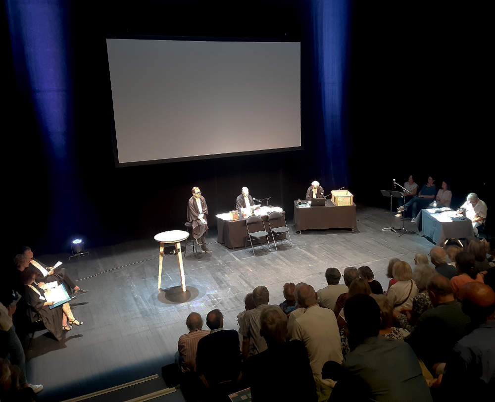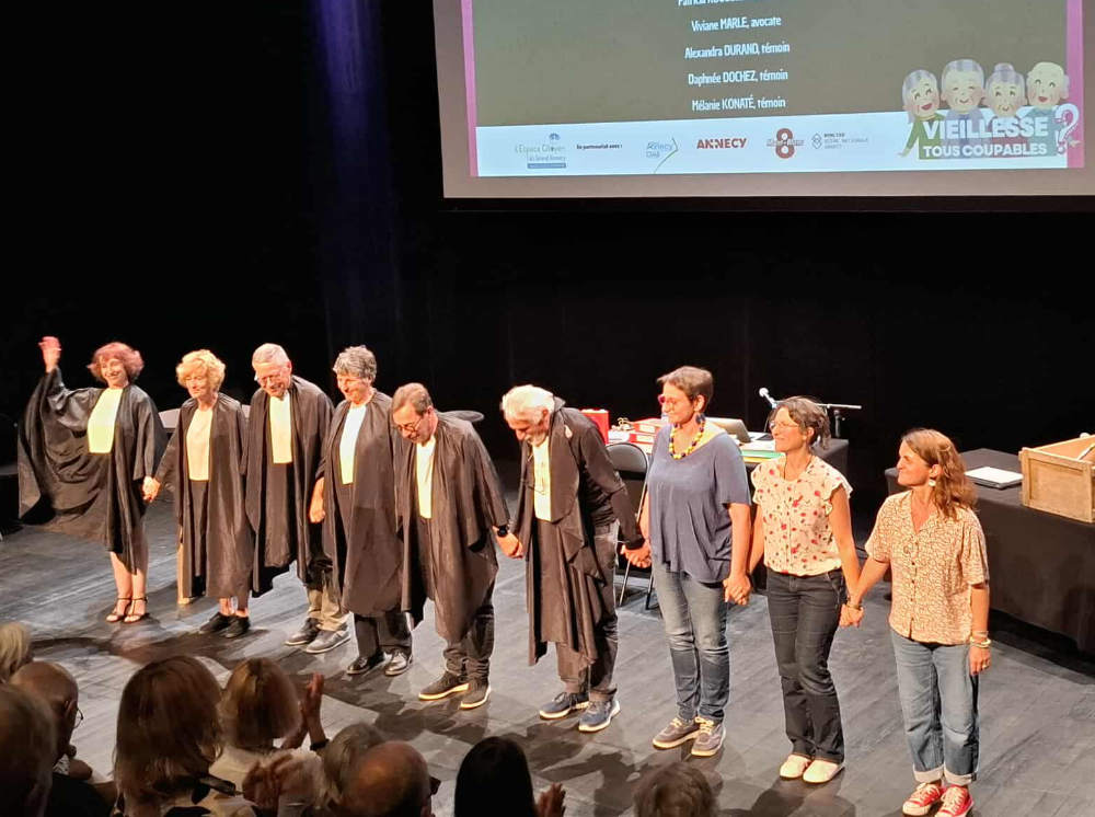 Le faux-vrai procès est un procès fictif sur la vieillesse pour lutter contre les idées reçues. Il a été créé et joué par un collectif de citoyens, en partenariat avec la Communauté d’Agglomération du Grand Annecy et l’Espace Citoyen d’Annecy.