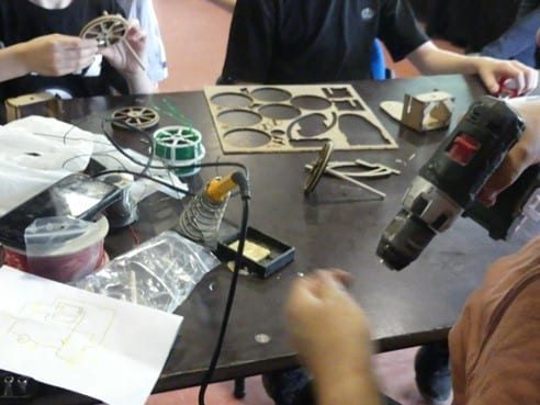 Ici on soude, on fait de la mécanique, on construit...Un robot à fabriquer soi-même, sans programmation, avec des capteurs.Un robot qui se déplace et ne se cogne jamais.Et on part avec !